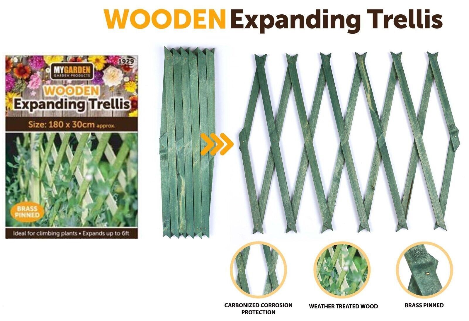 This wooden trellis is suitable for supporting climbing plants & vegetables etc. with both the height & width being adjustable. Ideal for creating stunning display walls or separating vegetable patches in your garden.